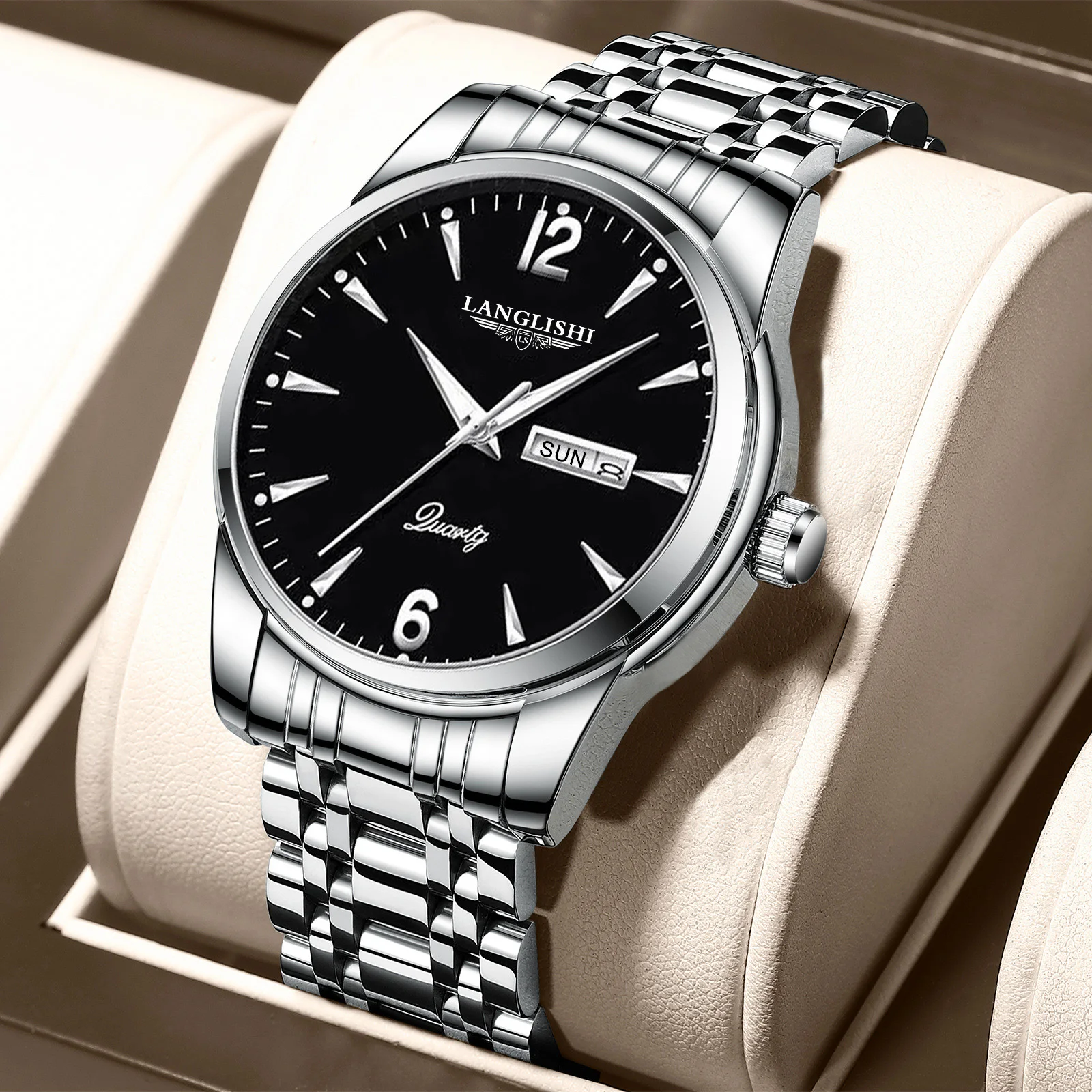 Name: LANGLISHI-Reloj de lujo para hombres, cronógrafo luminoso de acero inoxidable, resistente al agua, con calendario y fecha, de negocios, nuevo, 2021